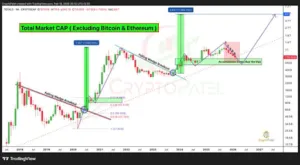 The referenced tweet projected a $5 trillion target for TOTAL3. That estimate assumes renewed risk appetite and liquidity return. It also relies on structural support holding firm.