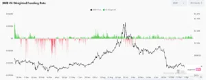 - BNB funding rates show neutral conditions, indicating reduced leverage and a reset market structure.