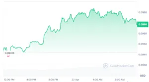 Dogecoin as of writing trades near $0.097 after a modest upward move. The price has gained about 2.55% over the past 24 hours. This reflects mild bullish momentum following recent consolidation.