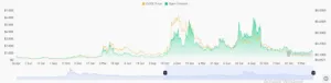 The derivatives landscape shows a shift toward reduced leverage. Open interest has declined from previous peaks above $5 billion. It now stabilizes closer to the $1 billion level.