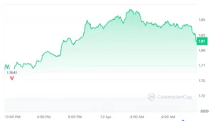 Render as of writing trades at $1.82 after recent gains. Price has advanced approximately 2.86% over the past day. The move follows a steady recovery from lower intraday levels.